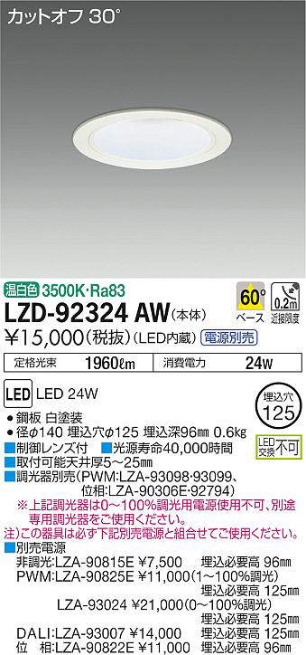 - LZD-92324AW+LZA-93007 本体+DALI 信号制御調光用電源 29000