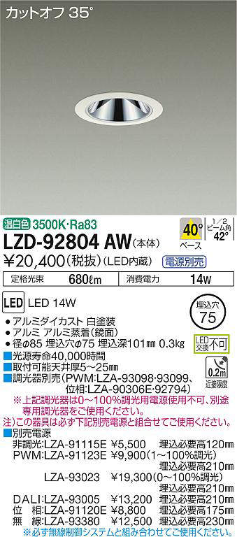 - LZD-92804AW+LZA-93005 本体+DALI 信号制御調光用電源 33600