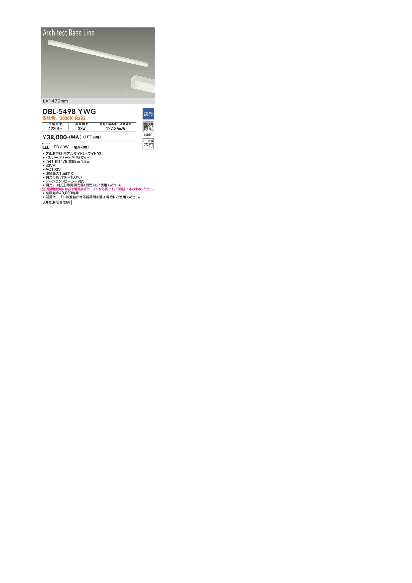 - DBL-5498NWG 白色/4000K/Ra93