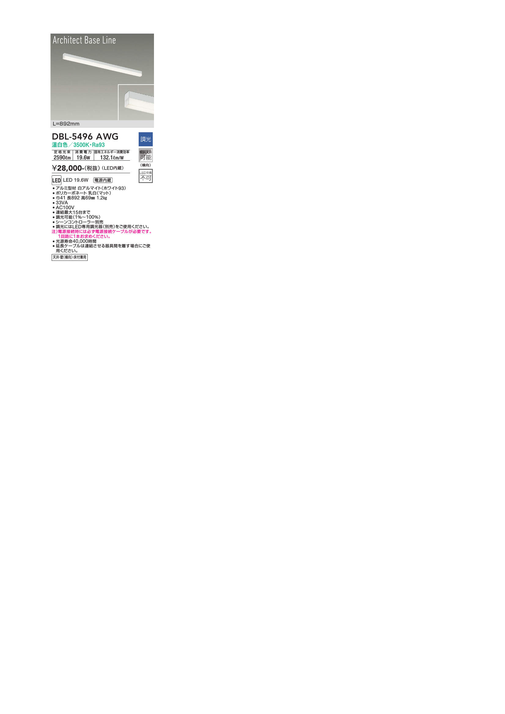 - DBL-5496LWG 電球色/2700K/Ra93
