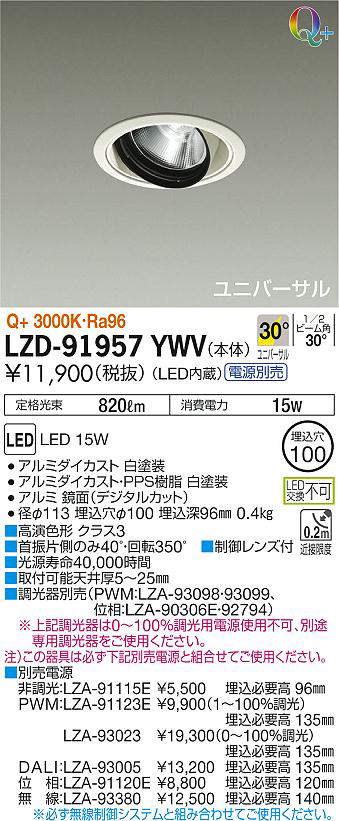 - LZD-91957YWV+LZA-91115E 本体+非調光用電源 17400