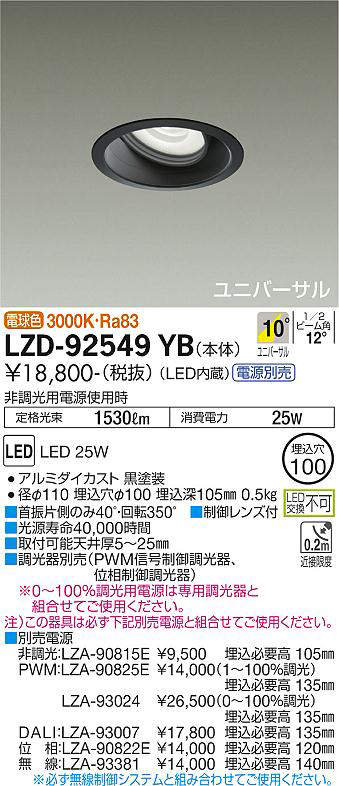 - LZD-92549YB+LZA-93007 本体+DALI 信号制御調光用電源 36600