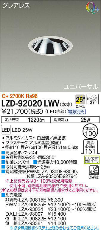 - LZD-92020LWV+LZA-90825E 本体+PWM信号制御調光用電源 33800