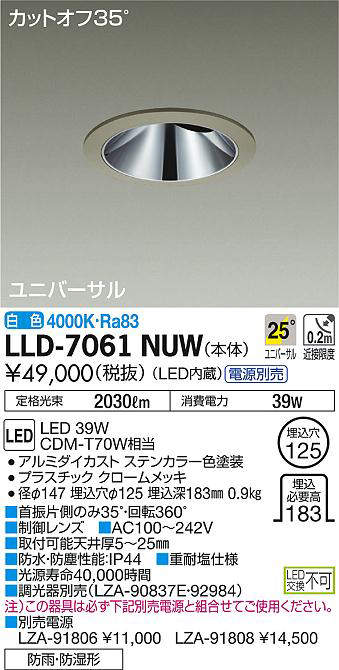 - LLD-7061YUW+LZA-91806 電球色/3000K/Ra83