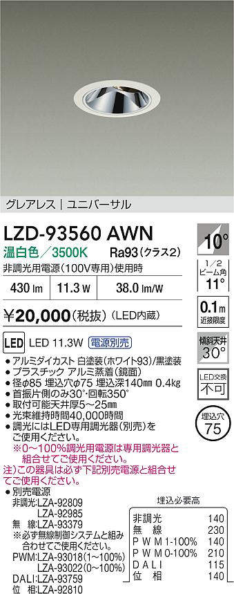 - LZD-93560AWN+LZA-93022 本体+0~100%調光用電源 19000