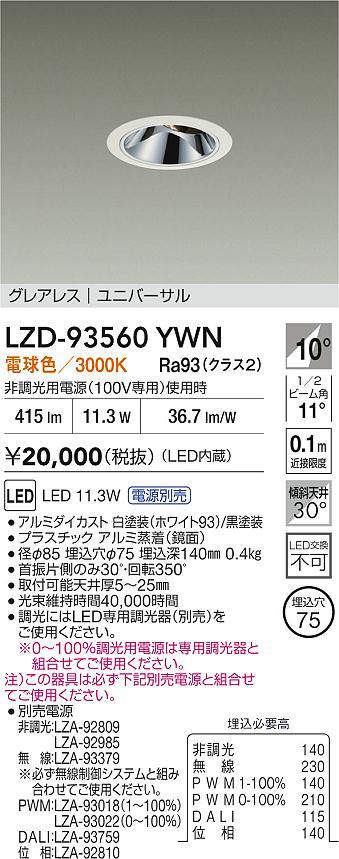 - LZD-93560YWN+LZA-93022 本体+0~100%調光用電源 19000