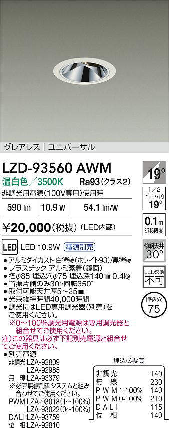 - LZD-93560AWM+LZA-93022 本体+0~100%調光用電源 19000