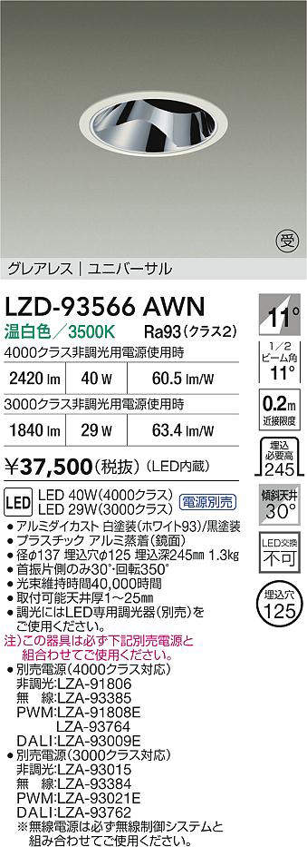 - LZD-93566AWN+LZA-93015 本体+非調光用電源 49500