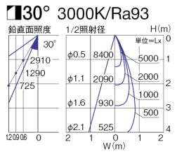 - 3000クラス非調光用電源使用時:定格光束 2540lm 消費電力 32W