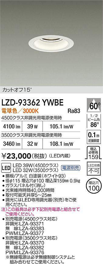 - LZD-93362YWBE+LZA-93371 本体+非調光用電源 23000