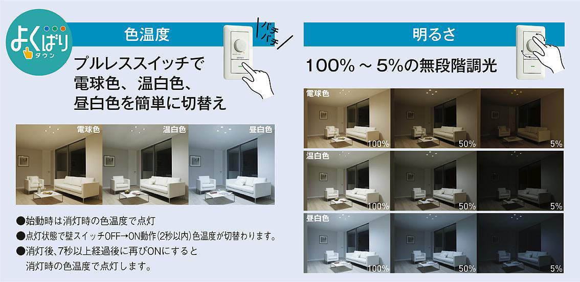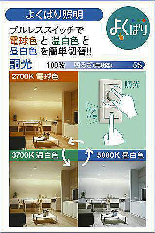 - ■調光可能(5%~100%)※壁スイッチで色温度のみ切替可能