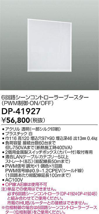 - 注)単品での使用はできません。必ず6回路シーンコントローラー(DP-41924)と組み合わせてご使用ください。市販のHUB/ルーターとの接続はできません。