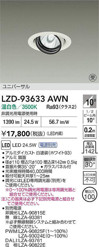 - LZD-93633AWN+LZA-93007 本体+DALI対応調光用電源 35600