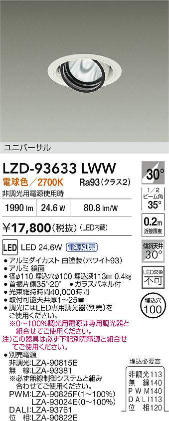 - LZD-93633LWW+LZA-90815E 本体+非調光用電源 27300