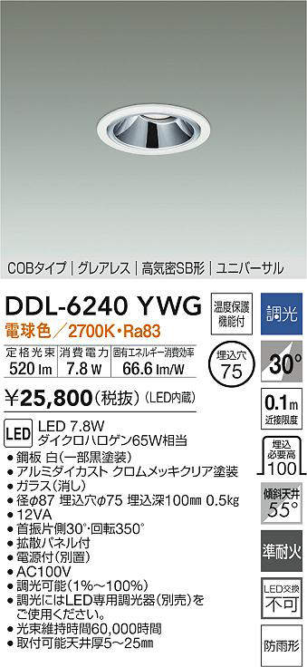 | 器具寸法 | 径φ87 埋込穴φ75 埋込深100㎜ |