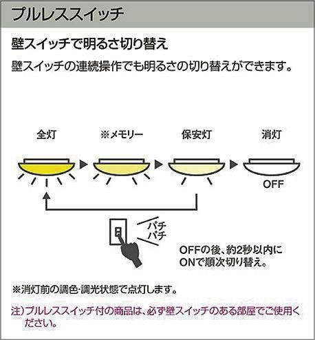 - ●プルレススイッチ付(全灯-※メモリー-保安灯)※消灯前の調色調光状態