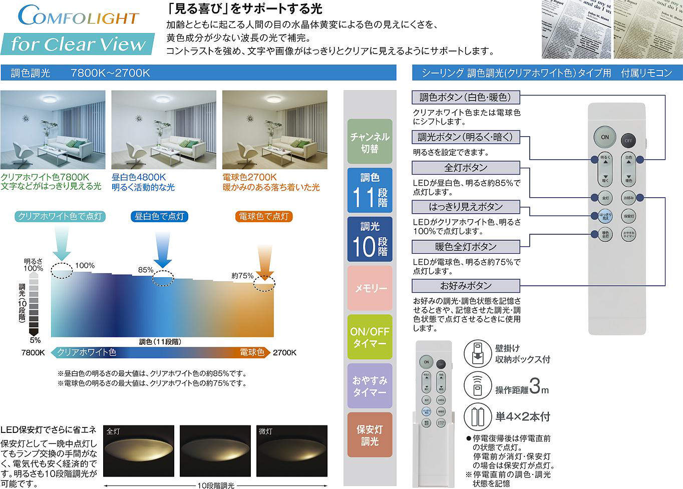 | 光色 | クリアホワイト色~電球色 |