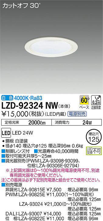 - LZD-92324NW+LZA-93007 本体+DALI 信号制御調光用電源 29000