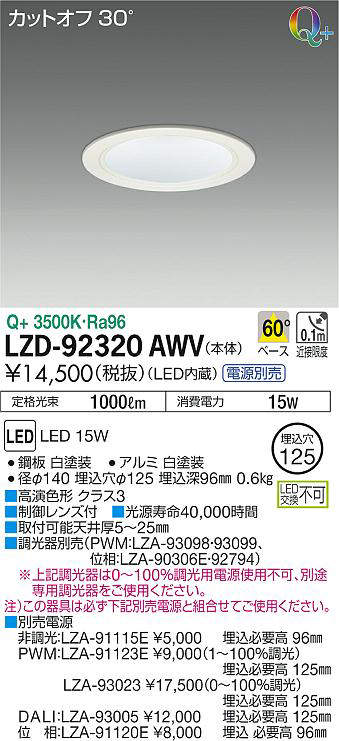 - LZD-92320AWV+LZA-93005 本体+DALI 信号制御調光用電源 26500
