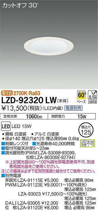 - LZD-92320LW+LZA-91115E 本体+非調光用電源 18500