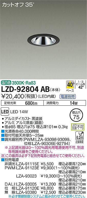 - LZD-92804AB+LZA-91115E 本体+非調光用電源 25900