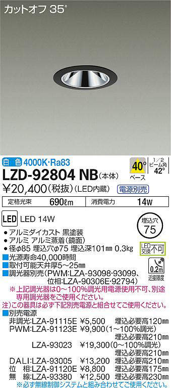 - LZD-92804NB+LZA-91120E 本体+位相制御調光用電源 29200