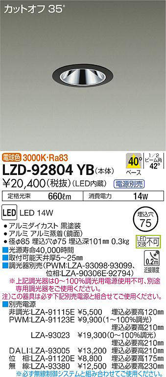 - LZD-92804YB+LZA-91120E 本体+位相制御調光用電源 29200