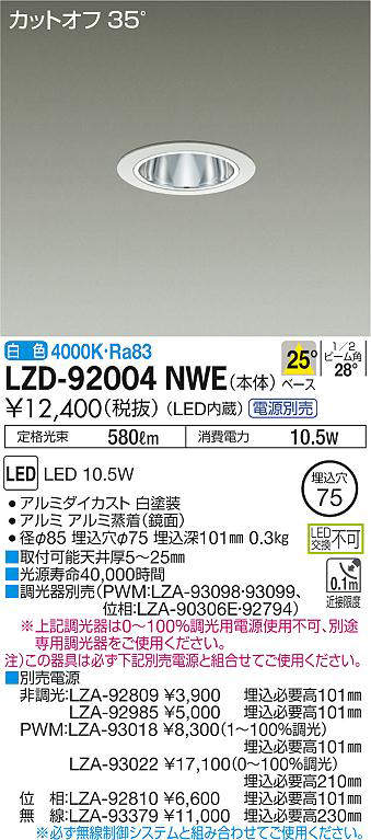 - LZD-92004NWE+LZA-92985 本体+非調光用電源(100-242V) 17400