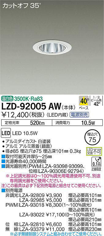 - LZD-92005AW+LZA-92985 本体+非調光用電源(100-242V) 17400