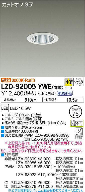 - LZD-92005YWE+LZA-92985 本体+非調光用電源(100-242V) 17400