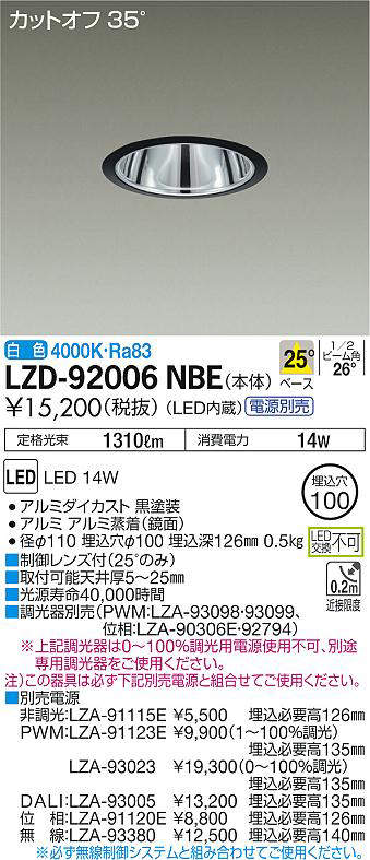 - LZD-92006NBE+LZA-91115E 本体+非調光用電源 20700
