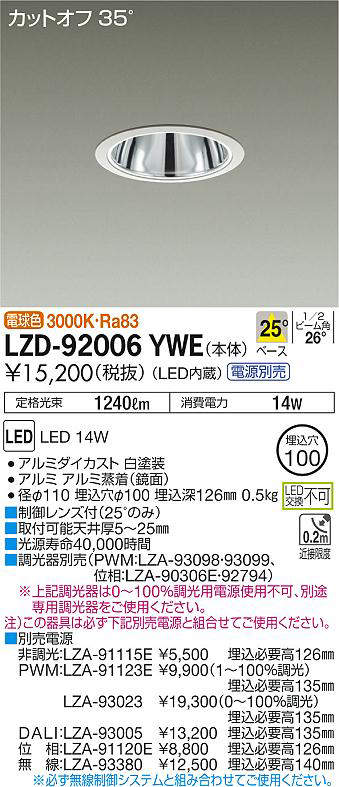 - LZD-92006YWE+LZA-93005 本体+DALI 信号制御調光用電源 28400