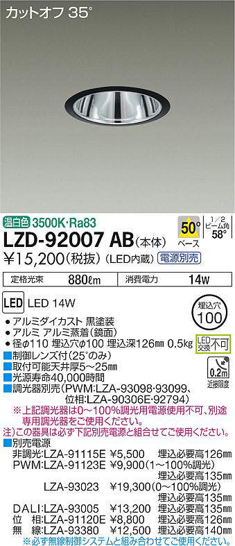 - LZD-92007AB+LZA-93023 本体+0%~100%調光用電源 34500