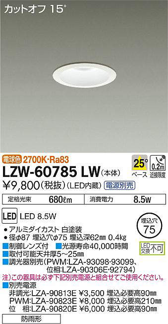 - LZW-60785LW+LZA-90820E 本体+位相制御調光用電源 15800