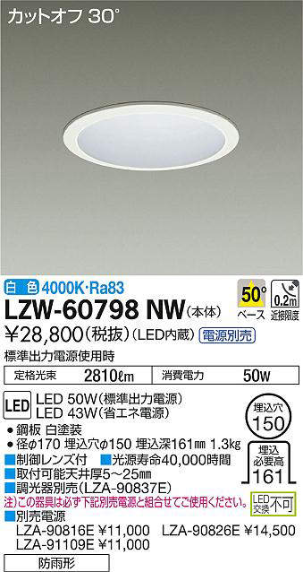 - LZW-60798NW+LZA-90816E 本体+非調光用電源(標準出力電源) 39800
