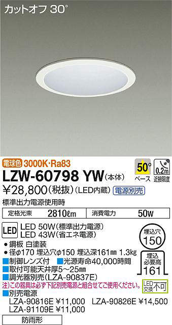 - LZW-60798YW+LZA-90816E 本体+非調光用電源(標準出力電源) 39800