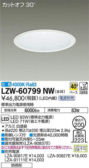 - LZW-60799WW 昼白色/5000K/Ra83