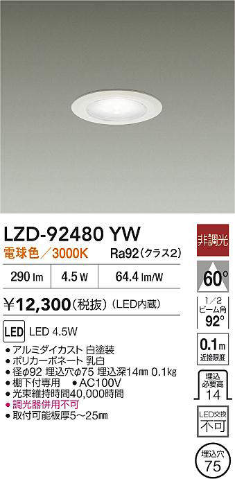 | 器具寸法 | 径φ92 埋込穴φ75 埋込深14mm |