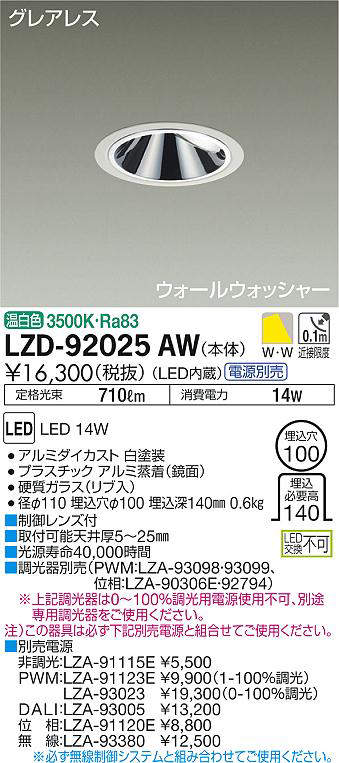- LZD-92025AW+LZA-93005 本体+DALI 信号制御調光用電源 29500