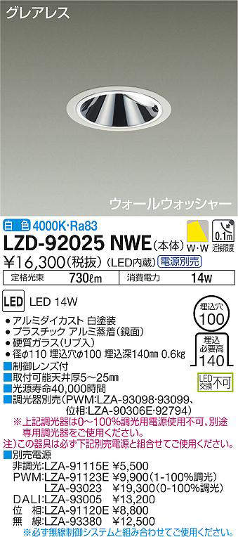 - LZD-92025NWE+LZA-91120E 本体+位相制御調光用電源 25100