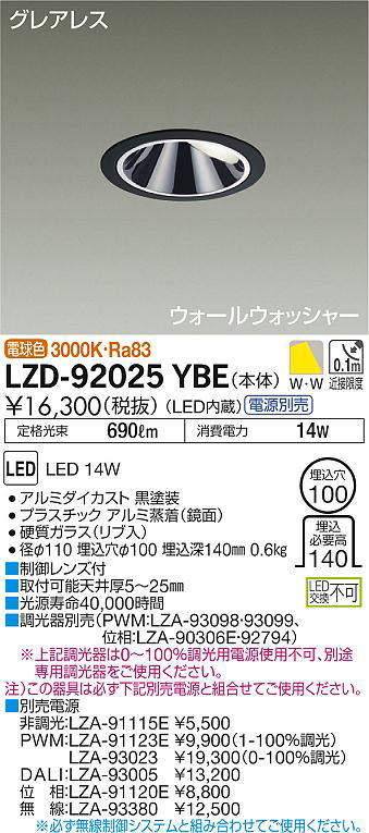- LZD-92025YBE+LZA-91120E 本体+位相制御調光用電源 25100