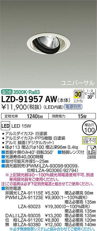 - LZD-91957AW+LZA-91115E 本体+非調光用電源 17400