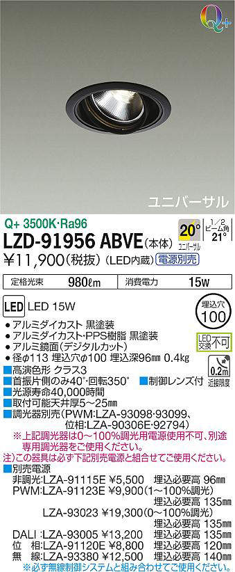 - LZD-91956ABVE+LZA-91123E 本体+PWM信号制御調光用電源 21800