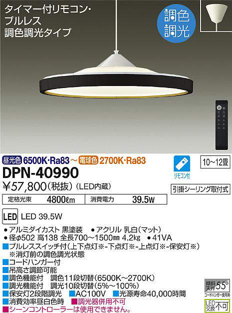 - ■プルレススイッチ付(上下点灯※-下点灯※-上点灯※-保安灯※)※消灯前の調色調光状態