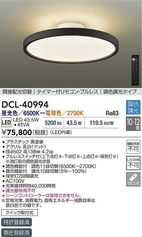 - ■プルレススイッチ付(上下点灯※-下点灯※-上点灯※-保安灯※)※消灯前の調色調光状態