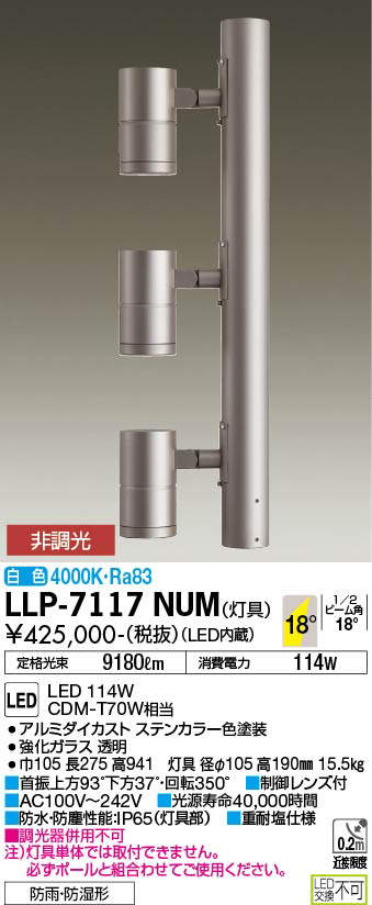 - LLP-7117NUM+LLA-7041U 本体+埋込固定用ポール(H=3000mm) 522000