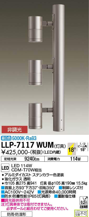 - LLP-7117WUM+LLA-7041U 本体+埋込固定用ポール(H=3000mm) 522000
