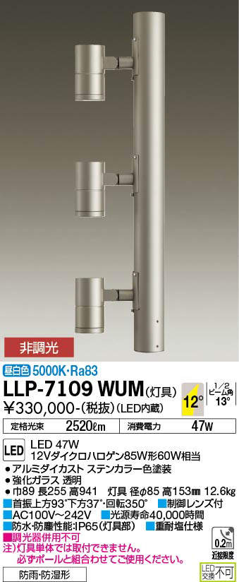 - LLP-7109WUM+LLA-7041U 本体+埋込固定用ポール(H=3000mm) 452000