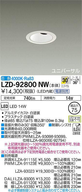 - LZD-92800NW+LZA-93023 本体+0%~100%調光用電源 33600