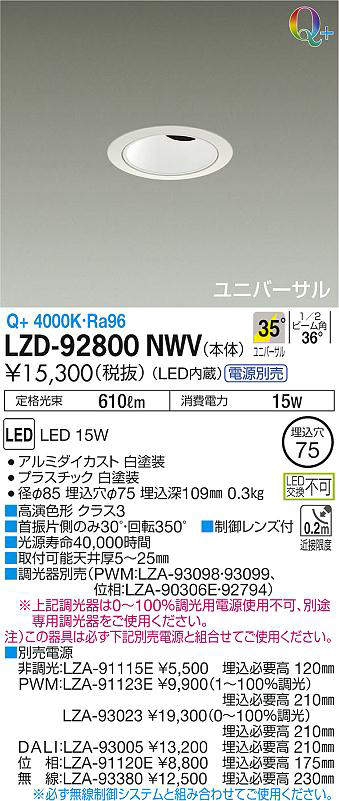 - LZD-92800NWV+LZA-93005 本体+DALI 信号制御調光用電源 28500